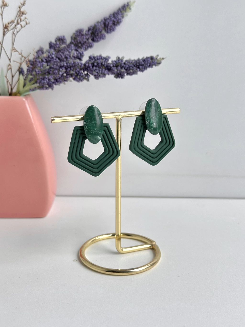 O Brinco Laura combina formas geométricas em um design composto por linhas sobrepostas que formam um elegante hexágono. O detalhe oval na parte superior traz um contraste sutil, tornando a peça ainda mais interessante e sofisticada.